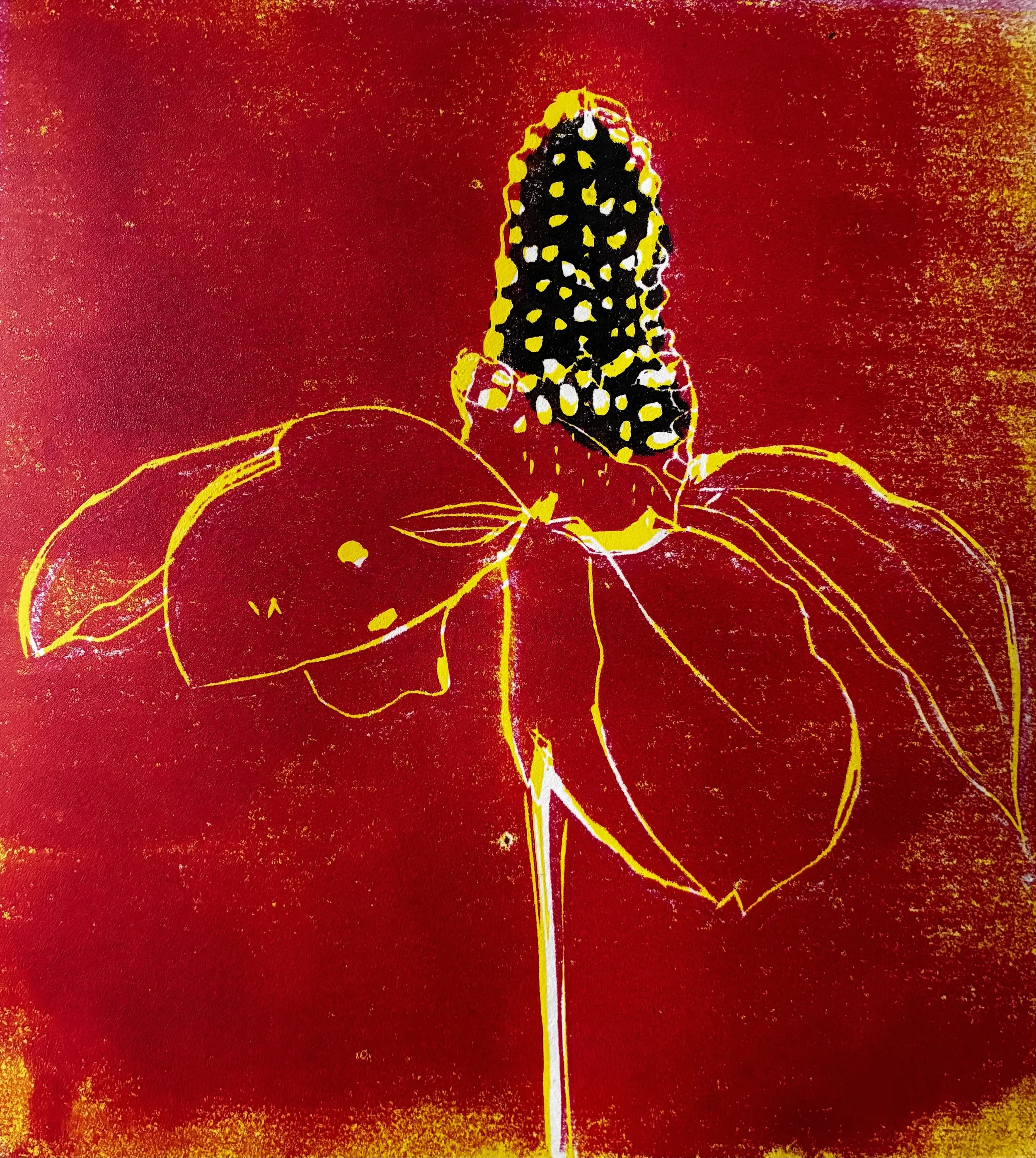 Su Joy is a painter and printmaker whose practice is rooted in process, with each stage of making informing the next. Working with screen printing, lino printing and mono-printing, she explores the interplay between control and spontaneity within layered compositions.